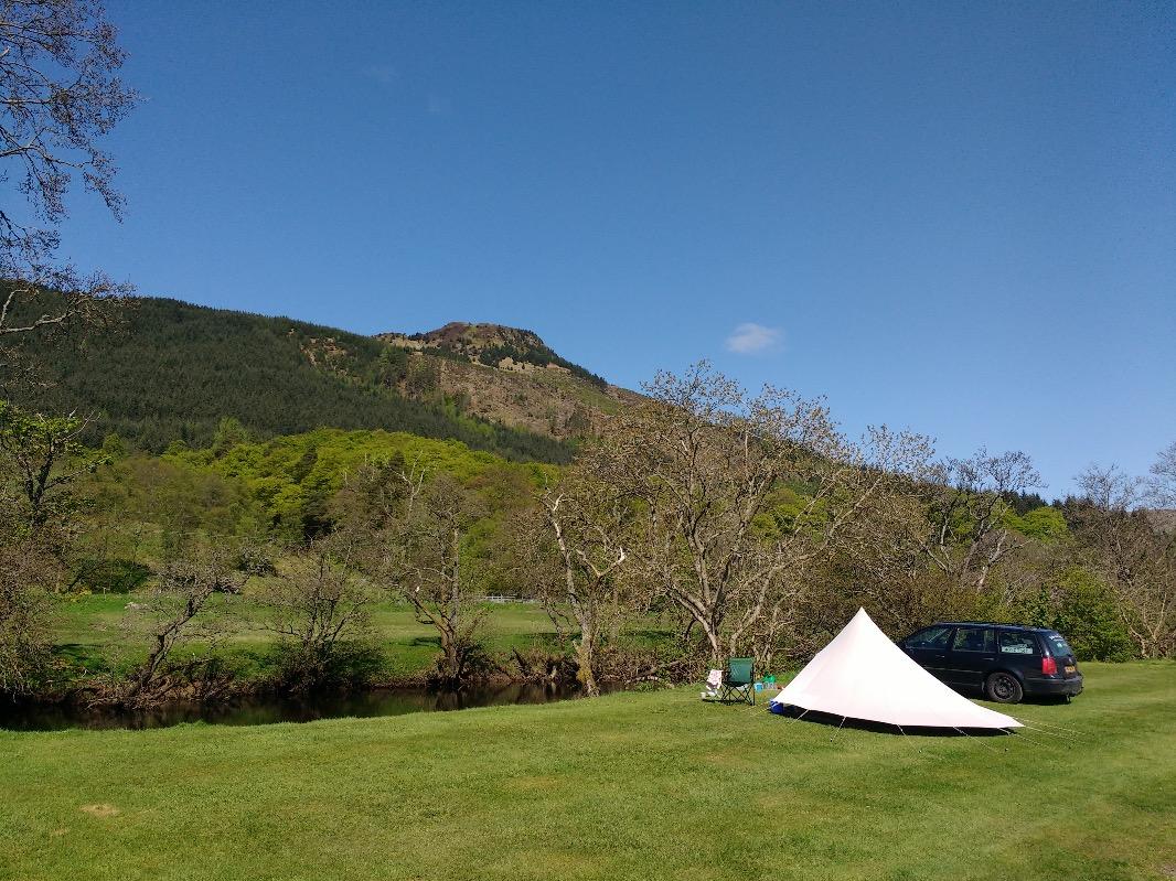 Around 7 p.m. I arrived in Strathyre, Scotland. I checked in at the camping and installed my tent on a nice spot with view of the feet of Ben Sheen (The fairy mountain of the Caledonians). I felt like coming home.
